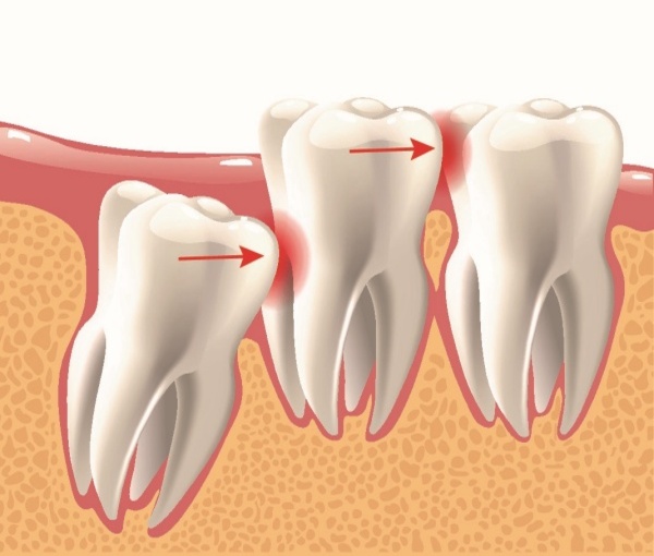 Xô lệch toàn bộ hệ thống răng: Lực đẩy từ răng mọc kẹt tác động liên tục, gây chen chúc, lệch lạc các răng phía trước, làm hỏng kết quả chỉnh nha nếu có.
